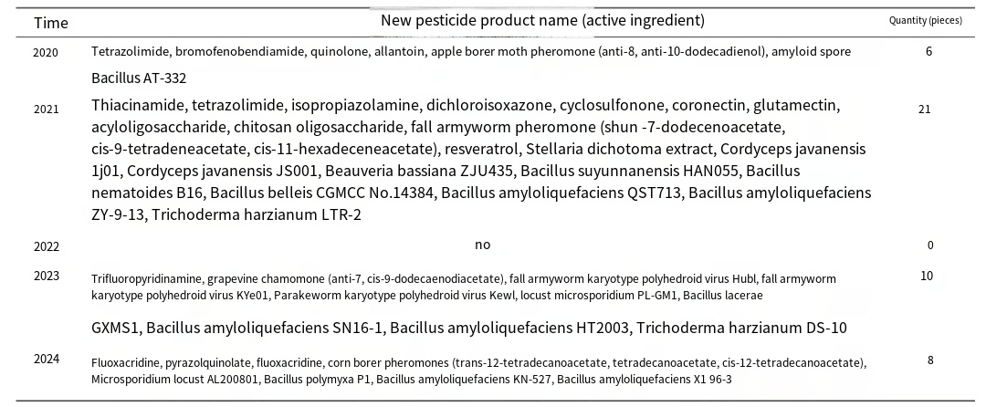 Over the past five years, the rise of biopesticides has been the industry's most dazzling highlight. Among the 85 newly registered products, 57 were biopesticides, accounting for over two-thirds (67.1%) and significantly outnumbering new chemical pesticides. Microbial pesticides are the core driver of this wave, making up nearly 65% of all new biopesticide registrations. This is driven by strong support from national policies and reflects the urgent market demand for green pest and disease control solutions.