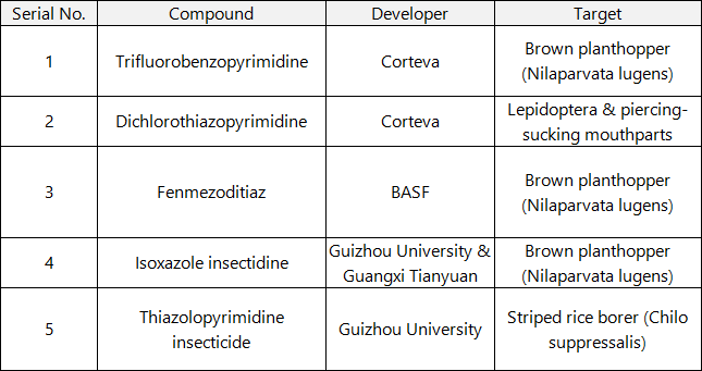 • Isoxazolopyrimidine compound (Yizuochongmiding): Commercialized by Guangxi Tianyuan, this agent specializes in controlling rice planthoppers. Field trials show its efficacy is comparable to the international benchmark, Triflumezopyrim, and significantly superior to other mainstream agents on the market.