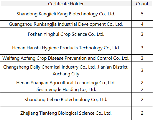 The data also shows that new product registrations are concentrated in the hands of a few technologically advanced companies. This indicates that under increasingly stringent regulations and evolving market demands, companies with strong R&D capabilities and market insight are leading the innovation and development of the entire public health insecticide industry.