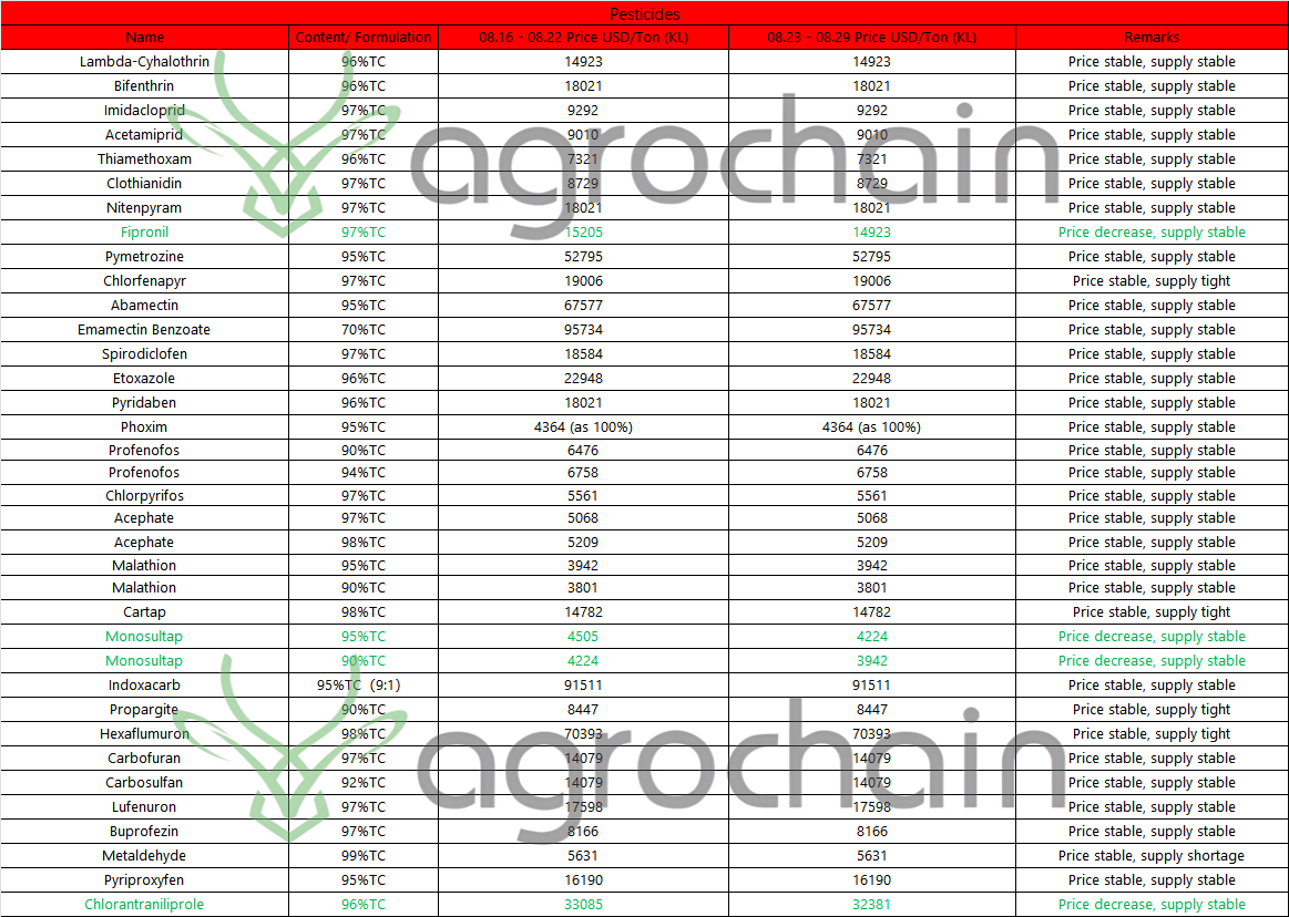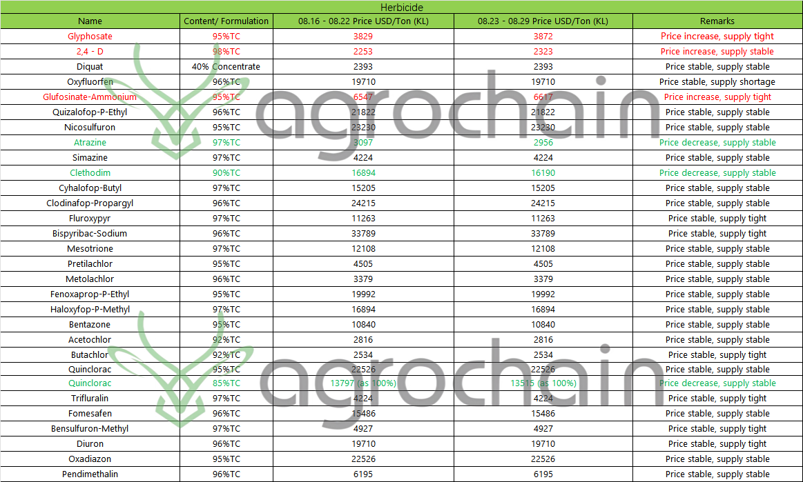 Tags: 农药市场价格周报 除草剂 杀菌剂 杀虫剂