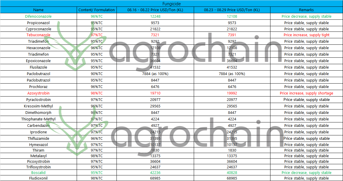 Agrochemical Price Weekly: Azoxystrobin Leads with a 2,000 Yuan Increase, Boscalid Sees the Biggest Drop. What's the Short-Term Trend?