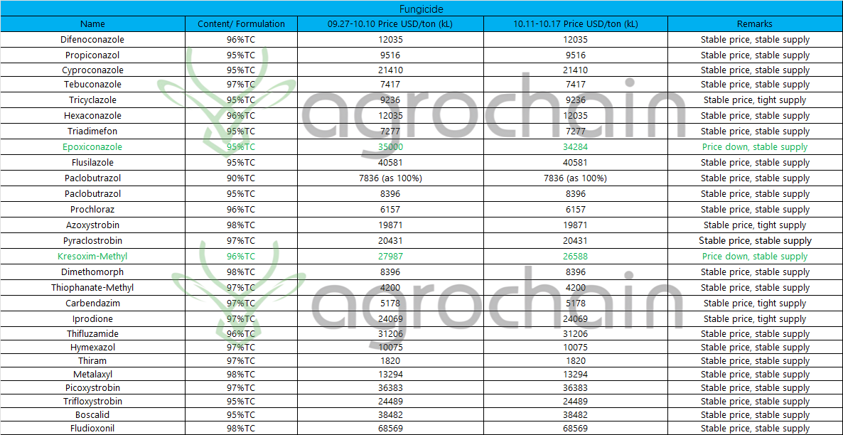 3. Fungicides: Price Drops in Difenoconazole and Kresoxim-methyl; Tight Supply for Tebuconazole and Carbendazim