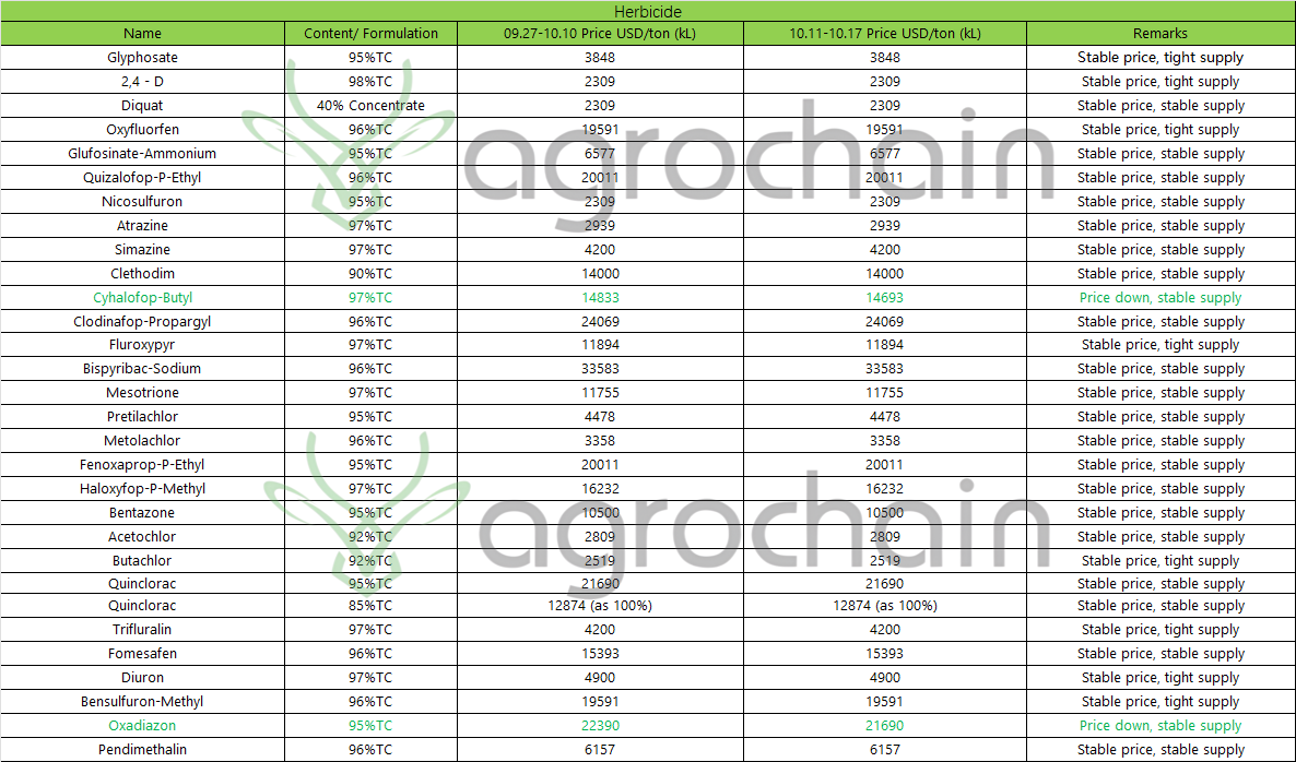 1. Herbicides: Price Drops in Two Varieties, Tight Supply for Multiple Types