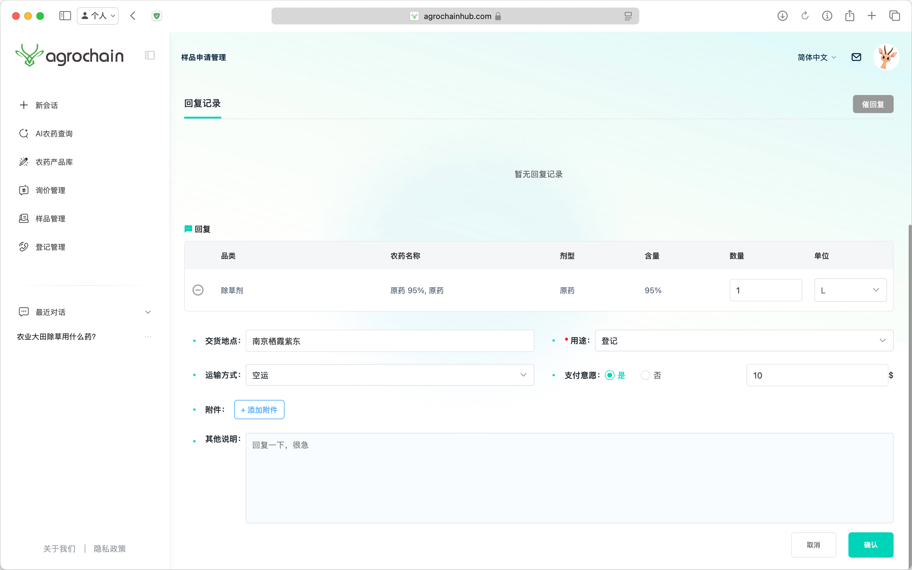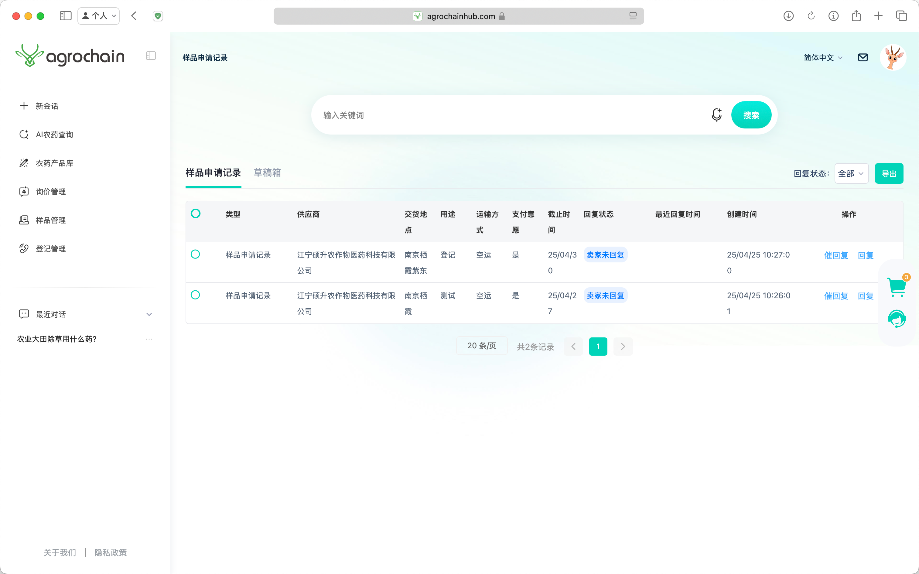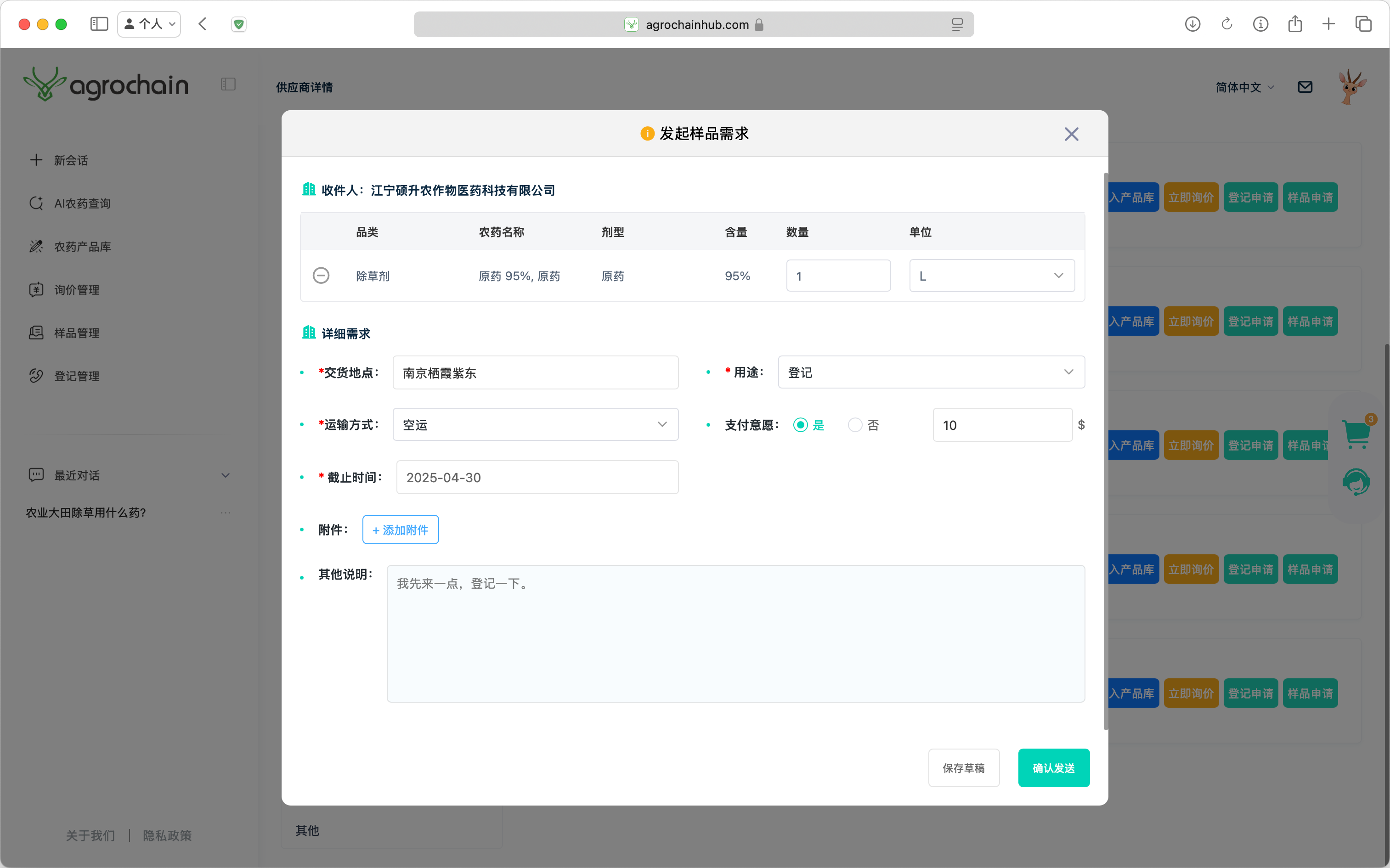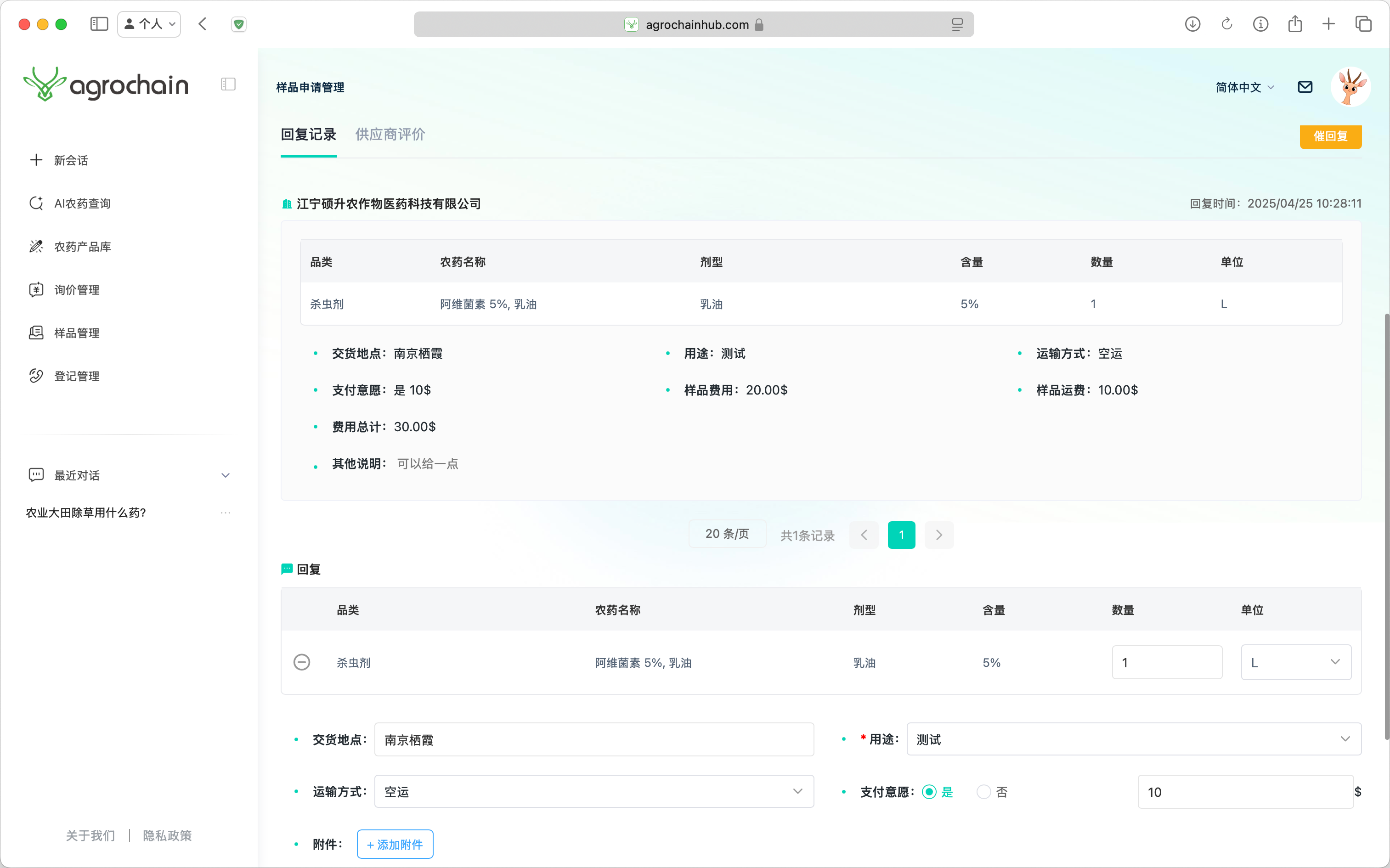 With the Sample Management function, buyers can conveniently request samples from suppliers for quality assessment and testing. Submit requests after filling in sample needs, shipping information, and cost willingness, then track the sample processing status, logistics information, and communicate accordingly on the platform.