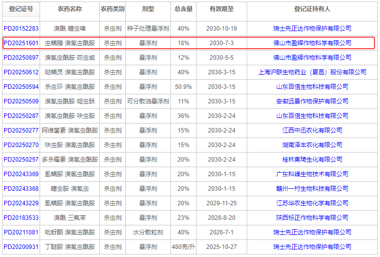 如果说高纯度原药是坚实的“地基”,那么层出不穷的复配产品就是在其上构建的“超级应用”。近日,佛山市盈辉作物科学登记的“18%虫螨腈·溴氰虫酰胺悬浮剂”,便是这一趋势的最新例证,它精准地指向了豇豆蓟马这一难防害虫。