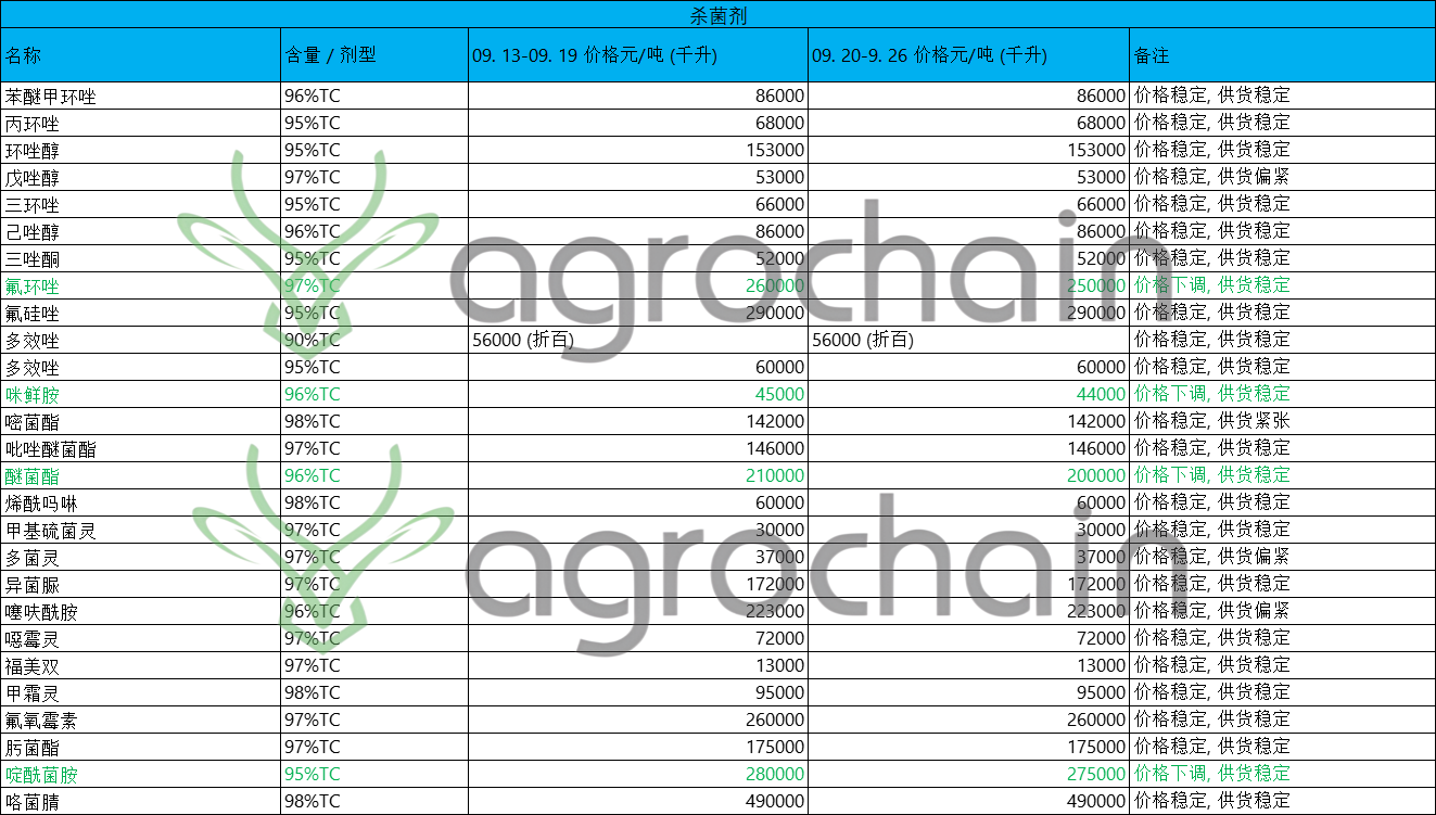 95% 氟环唑:每吨下调 1 万元,现在 25 万元 / 吨;