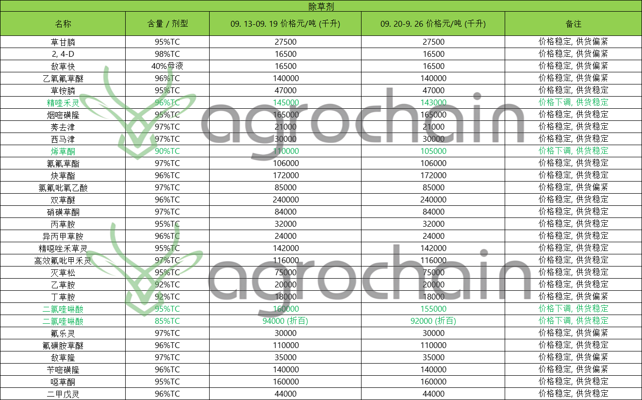 咱们先聚焦上周降价的原药品种,再聊聊接下来市场会怎么走。