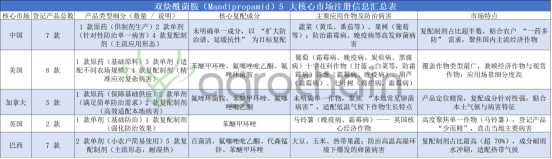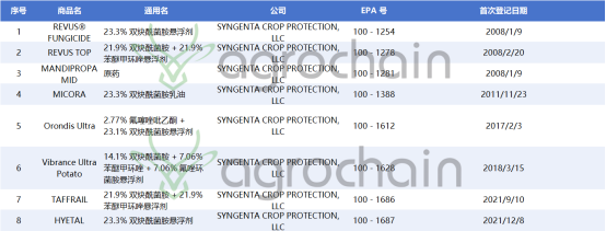 美国的农业规模大,登记的8款产品也考虑到了不同作物的需求: