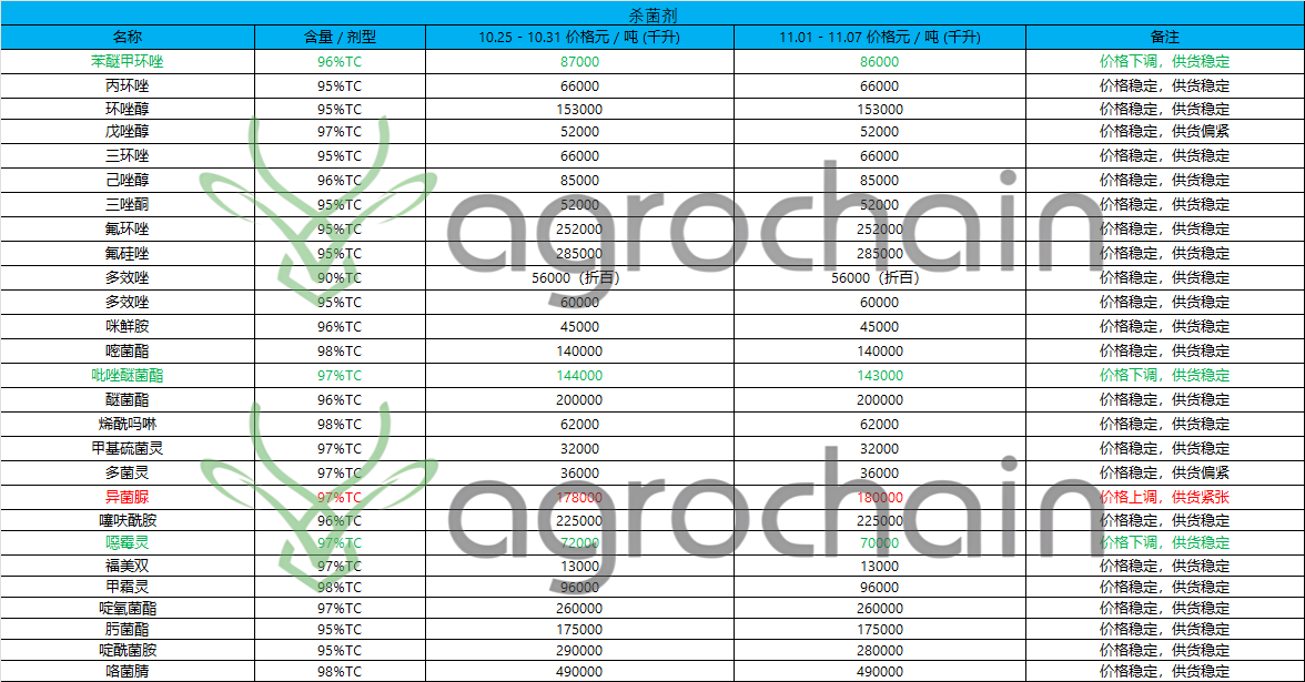97% 吡唑醚菌酯下跌1000元,至143000元/吨