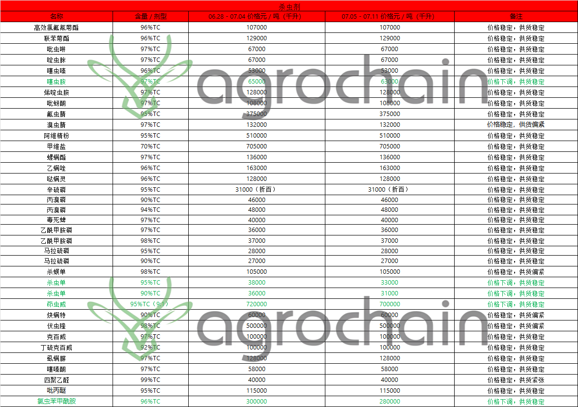 噻虫胺、杀虫单等也均有2,000至5,000元的跌幅。